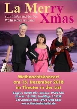 Eigenwillig, theatralisch, gefühlvoll, wild und ironisch interpretiert La Mer Lieder von Sehnsucht, vom Hafen und der Seefahrt. Chansonperlen von Jaques Brel bis Lale Andersen, wunderschöne Balladen von Mercedes Sosa bis Annette Bjergfeld, Songs von Otis Redding bis Rod Stewart, Elemente aus Folk, Pop, Soul, Jazz und die drei Stimmen machen das Programm von der ersten bis zur letzten Minute mitreißend und spannend.